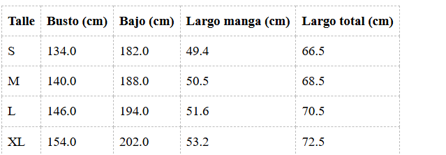 — Mangas 3/4 amplias para un calce cómodo